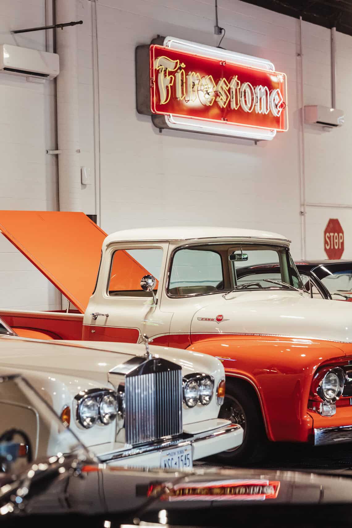 The launch revealed a venue unlike any other on the East End. Inside its sleek, industrial-inspired space, an impressive lineup of classic cars — including models from Porsche and Rolls-Royce — showcased both craftsmanship and history.