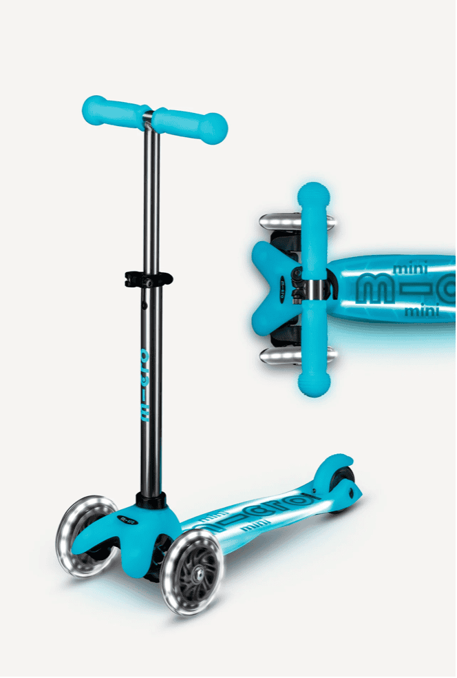This year, I love the Micro Mini LED Scooter with its motion-activated light-up wheels (no batteries!) and an adjustable handlebar that grows with kids ages 2–5. The new Mini Glow Plus LED is another favorite — the deck, handgrips, brake, and T-bar logo all glow in the dark after soaking up UV light. The new neon colors are also so fun.