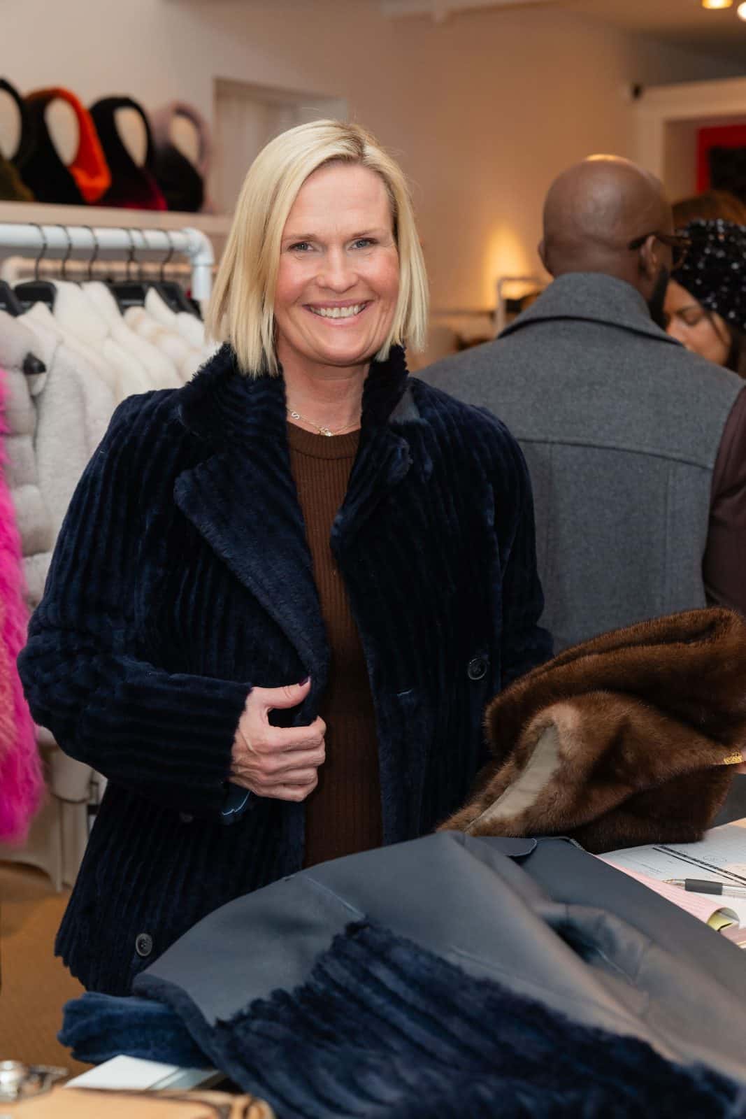 Inside the boutique, guests mingled and shopped the stylish and cozy line of shearling and feather coats while sipping MŌLÌ rosé wine, generously provided by MOLI restaurant. The glamorous shopping event was an opportunity to make a difference through fashion. A percentage of the proceeds from the evening’s sales were directed to the Breast Cancer Alliance, funding initiatives like innovative research, breast surgery fellowships, educational outreach, regional support, and life-saving screenings for underserved communities.
