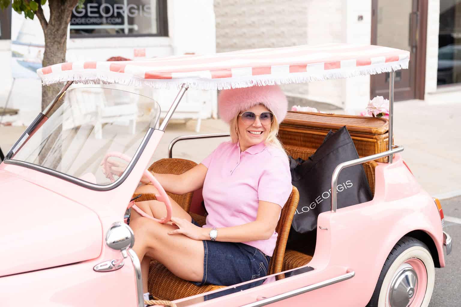 Bensimon herself played host to the Enville Season 7 celebration, which brimmed with excitement as guests arrived to find a pink Hampton Jolly parked out front. The car, provided by Carriage House Motor Cars, stood as a symbol of breast cancer awareness, welcoming fashionistas and philanthropists.